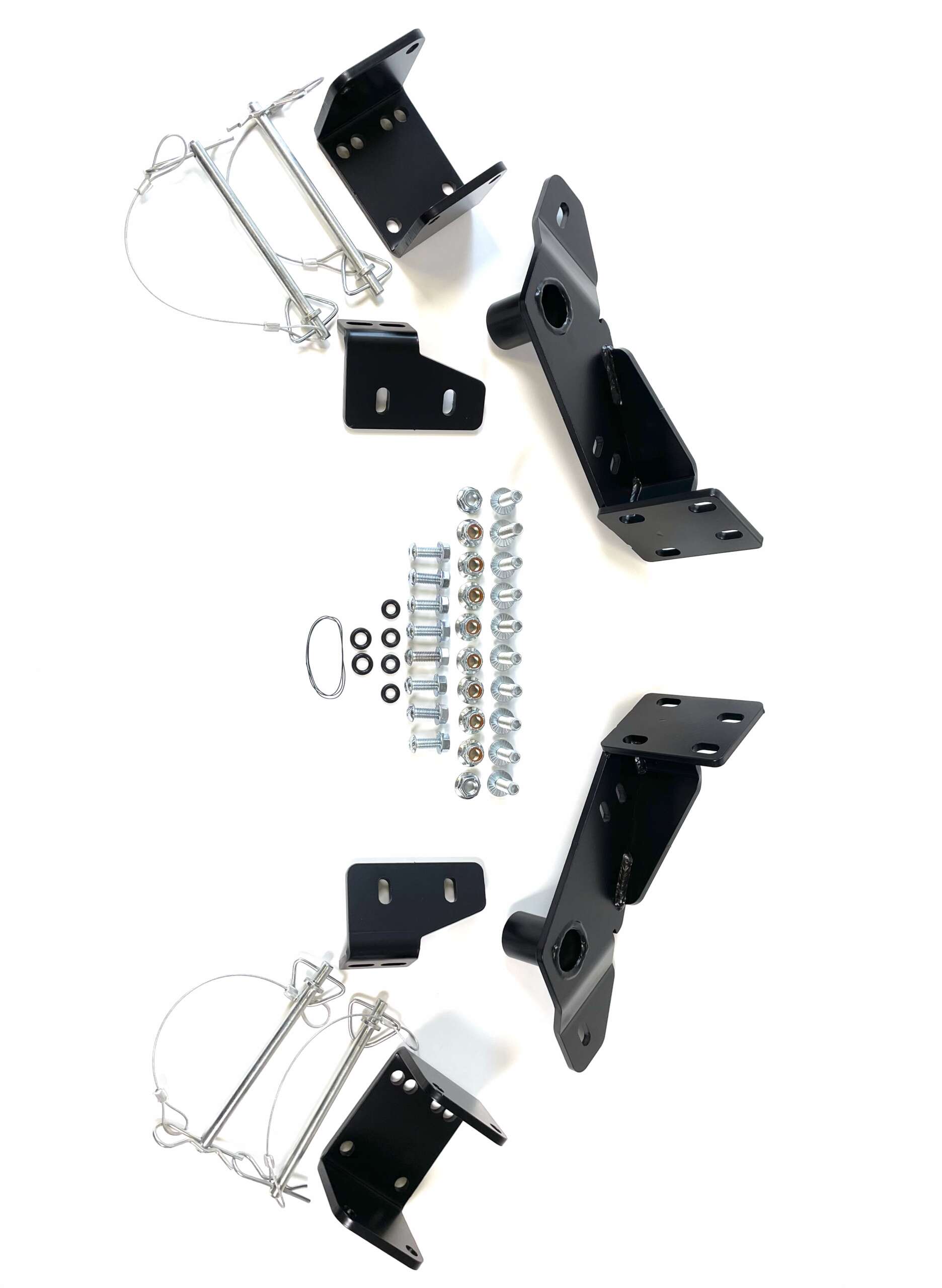 Bumpers & Mounts are sand-blasted then powder coated black for maximum durability. Hardware is Zinc Plated. Pins will not come with cotter lanyards.